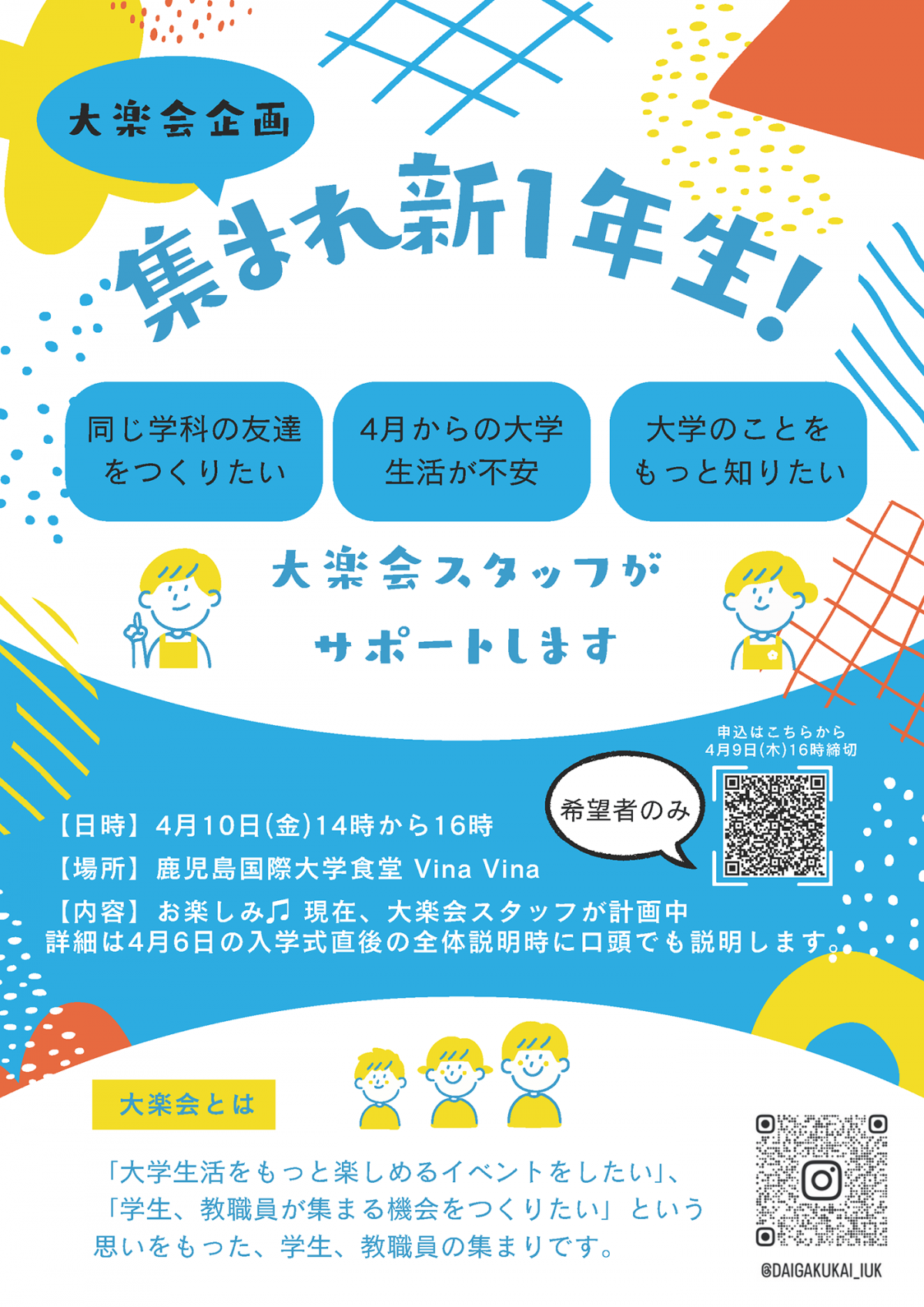 そんな新入生の皆さんをサポートするイベント「集まれ新1年生!」を開催します!