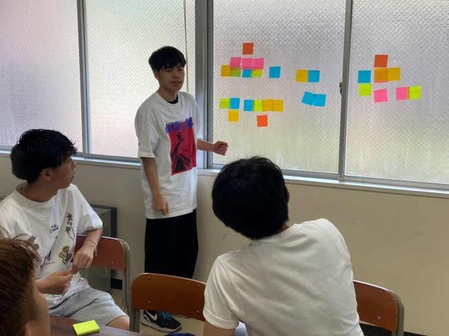 6月、レポート作成に向けてジェンダー問題について理解を深めるためのディスカッションを行いました。テーマは、「クラスに女性が4名。4つのグループを作るとき、女性をどのように配置するのがよい?」というもの。「各グループに1名ずつ」「2グループに2名ずつ」「1グループに4名をまとめる」といった意見が出されました。「各グループに1名ずつ」とする理由は、「男性だけよりも女性もいた方が違った意見が聞けてよい」ということでした。一見すると合理的なようですが、男性本位の考え方なのかもしれません。最初は「1グループに4名」にし、慣れてきたら別の分け方も考えるのがよいといった意見もありました。何が正解かはわかりません。だからこそ、皆が対等に前向きに話し合うことが大切です。