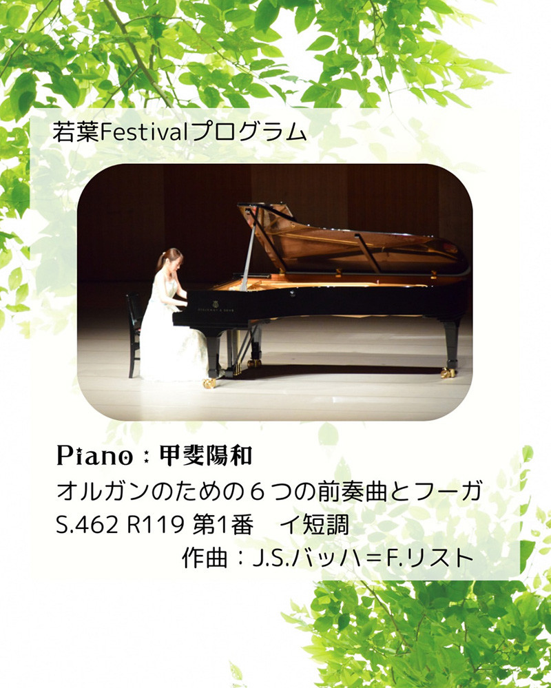 J. S. バッハ=F. リスト作曲《オルガンのための6つの前奏曲とフーガ 第1番 イ短調》を独奏した甲斐さんは「素敵な舞台でソロ出演させていただき、貴重な経験になった。ピアノの響きを感じながら、集中して演奏することができた。これからも音楽の魅力を、聴いてくださる方々にお届けしていきたい」と振り返ってくれました。