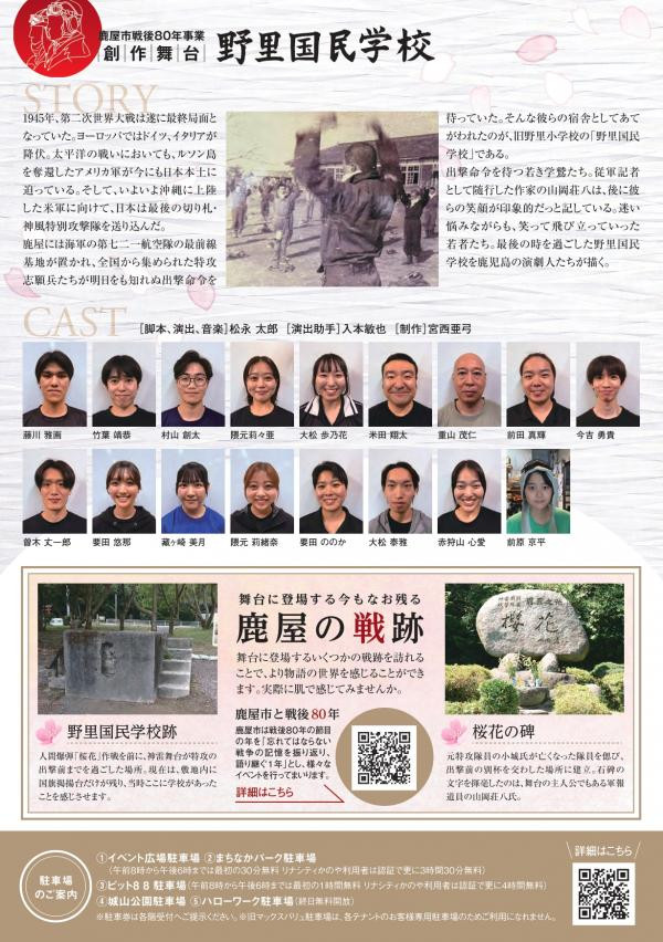 村山さんは「鹿屋航空基地資料館に通い、特攻兵の生活の記録や家族に宛てた手紙、遺言と向き合った。戦争の悲惨さを知るとともに、先人たちへの尊敬と平和への感謝を改めて感じさせられる舞台になった。これからも演劇や大学で学んだ声楽を通して、来てくださった方々の心に何かを残せるような活動をしていきたい」と今後の抱負を語ってくれました。