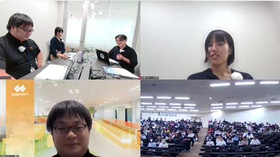 セッションでは、株式会社現場サポートのオフィスから、営業推進グループ グループ長・清田 裕基氏および現場BPO事業部・内野 真瑚氏に企業概要や業務内容、実務におけるデータ活用の具体例や課題、AI技術の導入状況などについて、企業におけるデータサイエンスの実践を現場の視点から詳しくお話しいただき、学生にとって、実社会でのデータ活用の実態を学ぶ貴重な機会となりました。