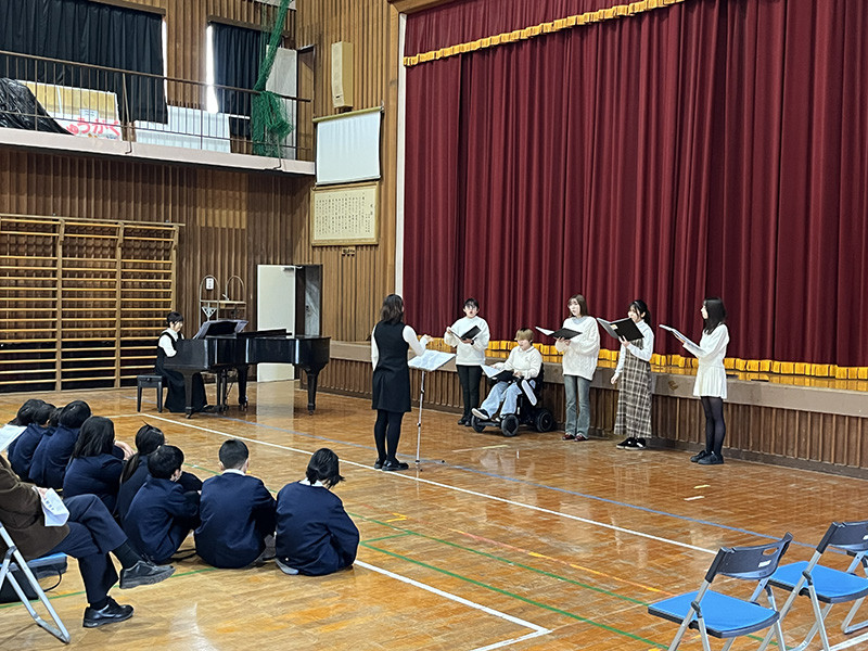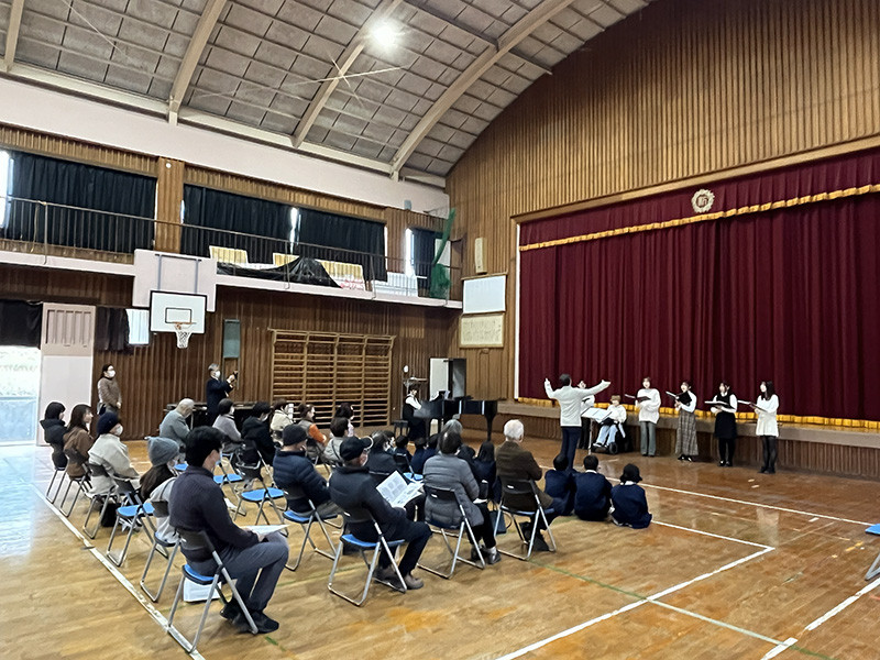 合唱部(学友会混声合唱団)が12月13日、垂水市立新城小学校を訪問し、「第8回ふれあいコンサート」と称して演奏を披露しました。
