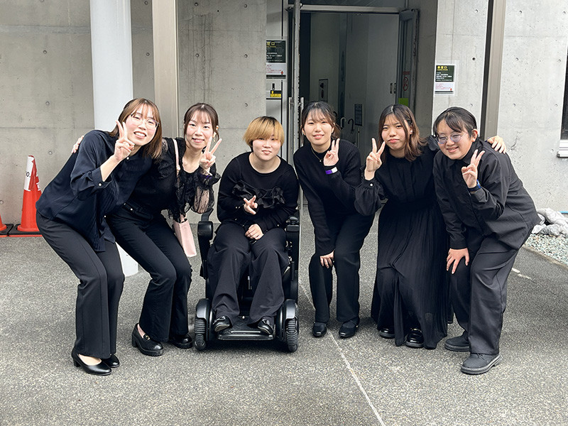 演奏した曲は、女声合唱とピアノのための組曲「桜の花びらのように」から「間奏曲」、女声合唱曲集「空のキャンパス」から「花」のアカペラ2曲。指揮も伴奏もない、頼るは自分たちだけのステージ。指導陣が客席で見守る中、6名の部員がお互いの呼吸を感じながら、要所では微笑んで目配せしつつ演奏。合唱部サウンドをホール内に堂々と響かせました。