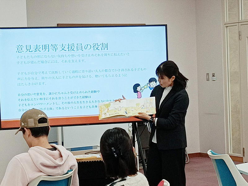 ロールプレイをとおして、子どもとの関係の取り方や話を聴くことを体験できました。代弁するだけなく、「権利擁護」としてのアドボケイトについて、考えるきっかけになった講義でした。