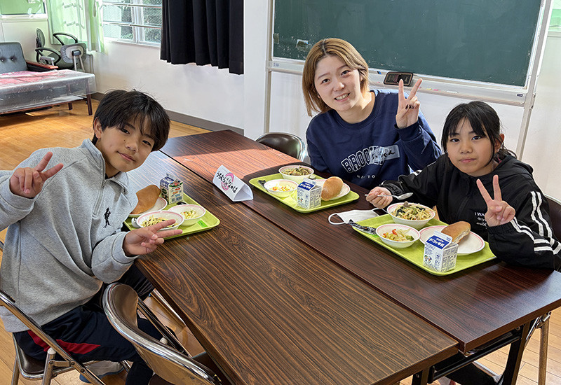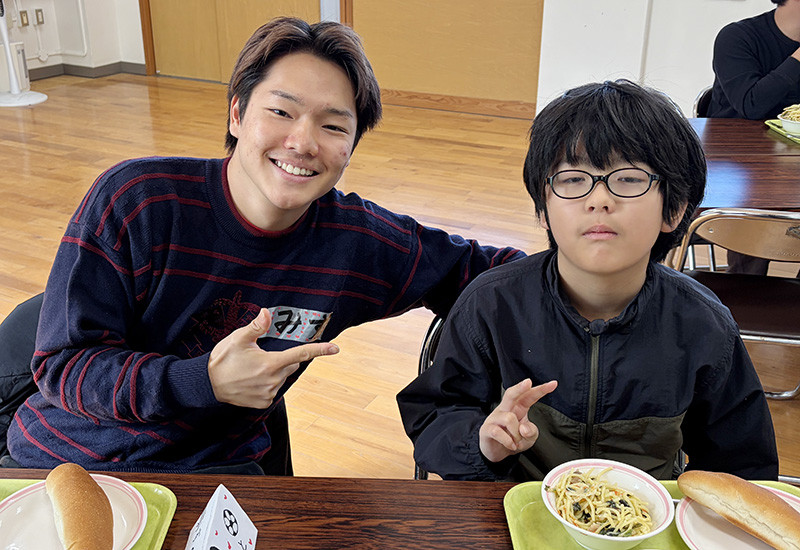 これは中西ゼミが同校と2019年から続けている取り組み「小大連携プロジェクト」の一環として行われたもので、①小学生と一緒に学校給食、②小学生と一緒にお昼休み、③小学生による校内案内、④小学生による学習発表会の4つのメニューからなります。