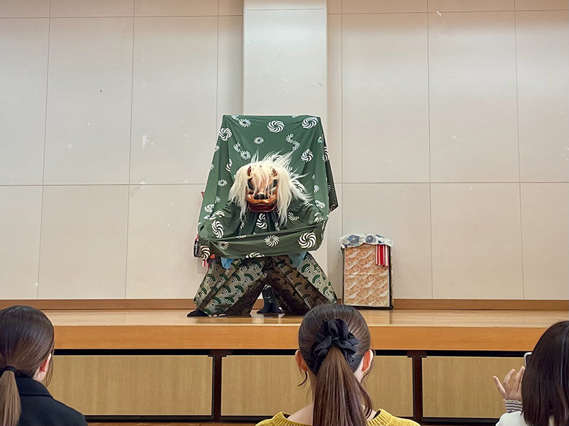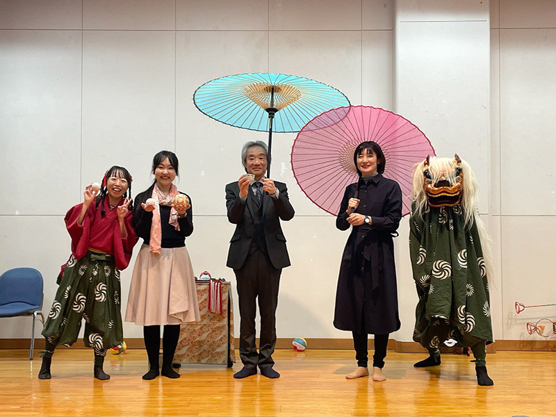 担当の久保禎教授(作曲・音楽理論)は「現在の学校教育『音楽』では、日本や世界の伝統音楽や伝統芸能について学ぶことも義務づけられているが、その学習の一環として貴重な機会になった。学生たちが、あんなにはじけるような笑顔で驚き、感嘆し、はしゃいでいるのを見たのは初めて。伝統・本物の凄みを存分に披露してくださり、お二人には感謝の気持ちでいっぱい。寿獅子舞で皆さん頭を噛まれ、邪気も払われたので、2026年は豊かで幸福な一年になるはず」と振り返っていました。