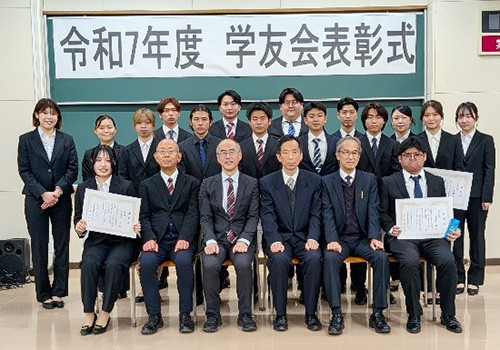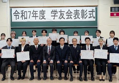サークル活動や課外活動において活躍した2団体【弓道部、バレーボール部(女子)】及び個人16名にそれぞれの功績を称え表彰状が贈られました。また、学友会活動に貢献した放送部及び第26代学友会役員23名に感謝状が贈られました。