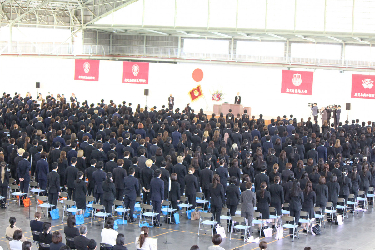 式では、小林潤司学長が式辞を述べたほか、入学生を代表して経済学部 経済学科の小牧 李歌さん(加治木高等学校出身)が「入学生宣誓」を行い、在学生を代表して学友会総務委員長の池田 悠人さん(国際文化学科4年)が在学生歓迎の辞を述べました。