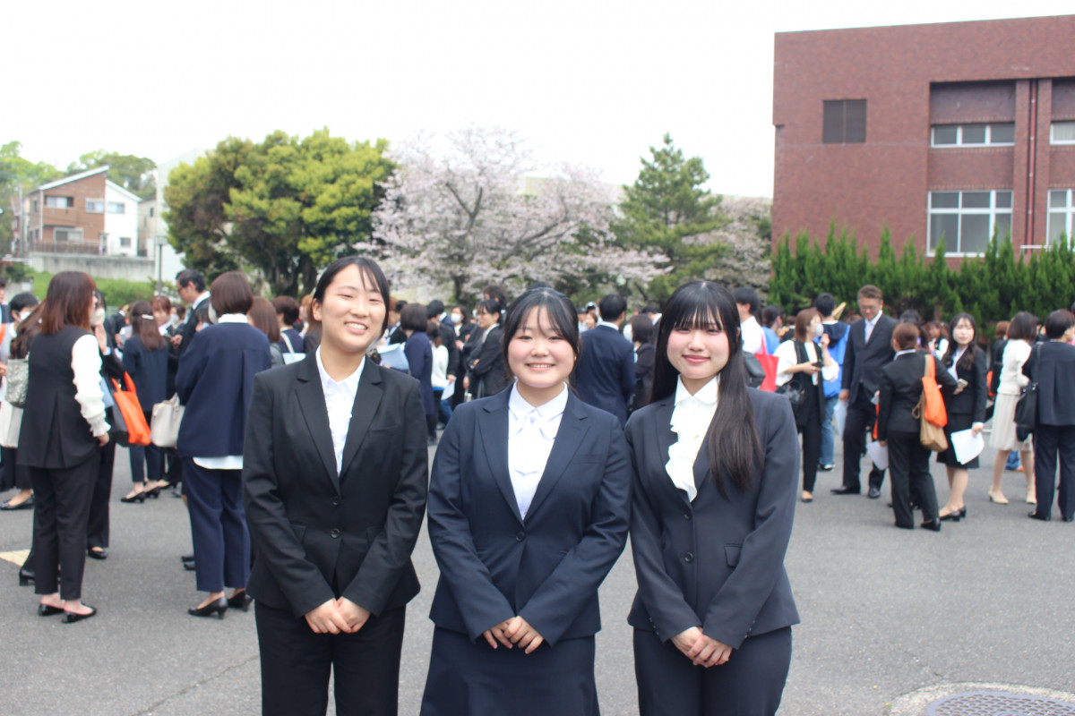 桜が咲き誇るキャンパス内では、設置されたフォトスポットで保護者や友人と一緒に記念撮影をする姿が数多く見られ、和やかな雰囲気での入学式となりました。