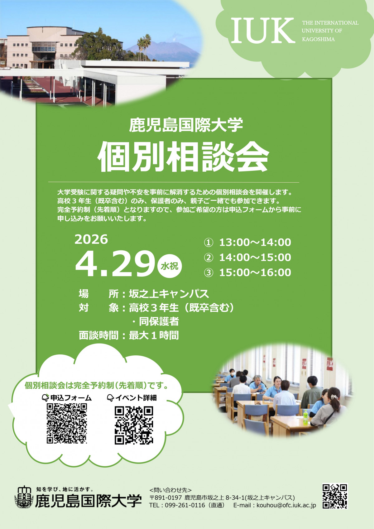 お問い合わせ先:鹿児島国際大学入試・広報課
