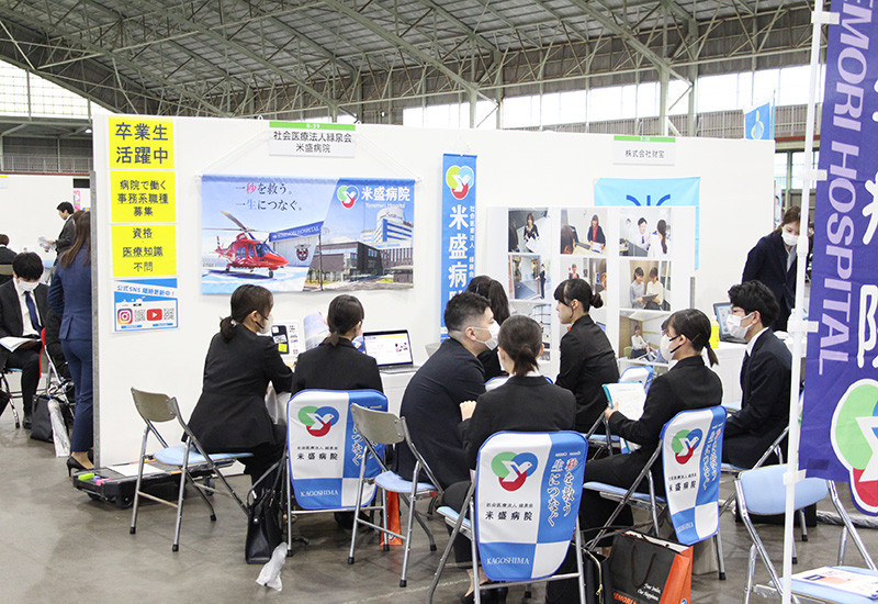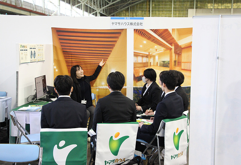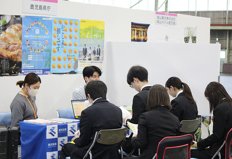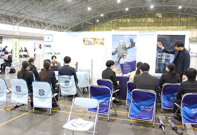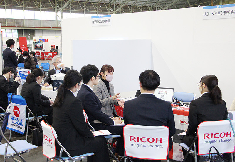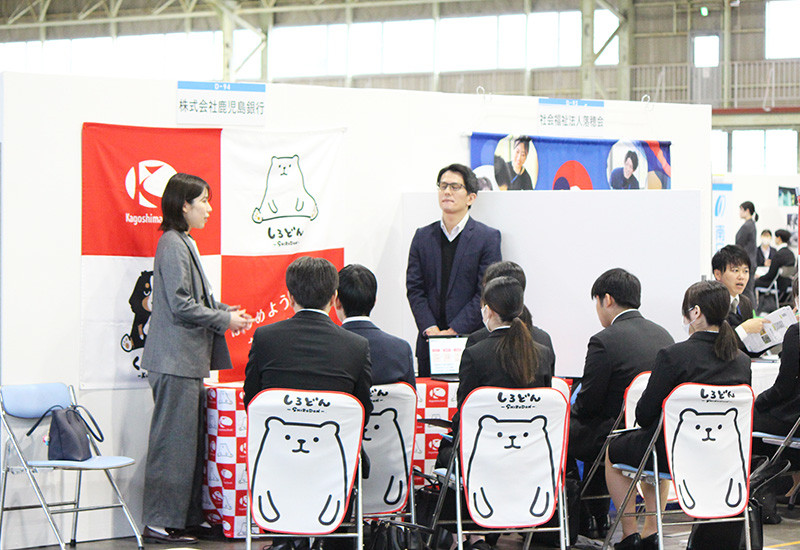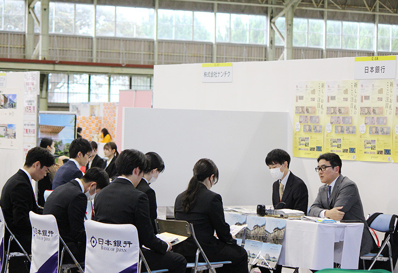 当日は官公庁や社会福祉法人、金融機関をはじめ、県内の優良企業など99団体が参加し、30分計5回の説明を行いました。会場には約230人の学生が参加し、各ブースでの説明を真剣に聞き入っていました。