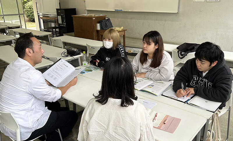 これは中西ゼミが毎年度後期に実施しているキャリア教育の第3弾にあたるもので、就職活動を目前に控えたこの時期に、大手企業の採用担当者と語り合うことで、キャリア設計の参考にしてもらうことを目的としたイベントです。この日参加したのはSMBCコンシューマーファイナンス(株)のほか、(株)鹿児島銀行、(株)カミチクホールディングス、(株)プライムアシスタンス、(株)南日本銀行の5社です。