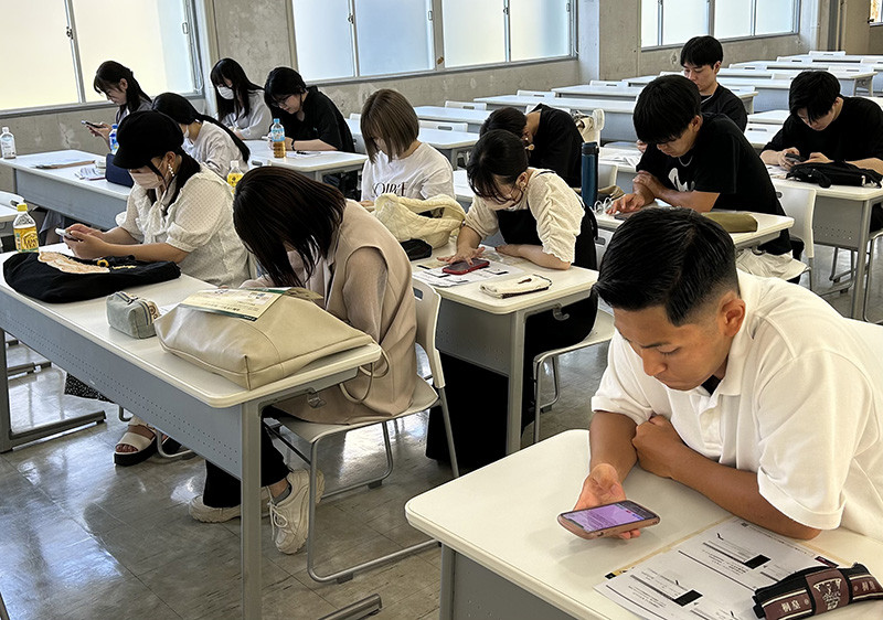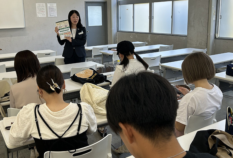 これは中西ゼミが毎年4年生を対象に行っている「就職前キャリア教育」の一環として、SMBCコンシューマーファイナンス(以下、SMBC社)の協力により実施されたもので、講師は同社鹿児島お客様サービスプラザの増子ほなみさんが務めました。