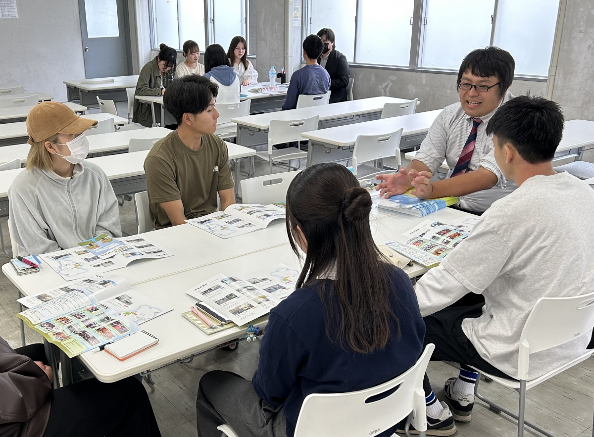 この日参加した中西ゼミ3年の富園圭太さんは「先日支援学校の生徒と触れ合う機会があり、社会福祉の世界に興味を持ったところだった。それだけに今日伺ったお話は興味深かった。今後、社会福祉法人を就職先の一つとして検討したいと思う」と語っています。