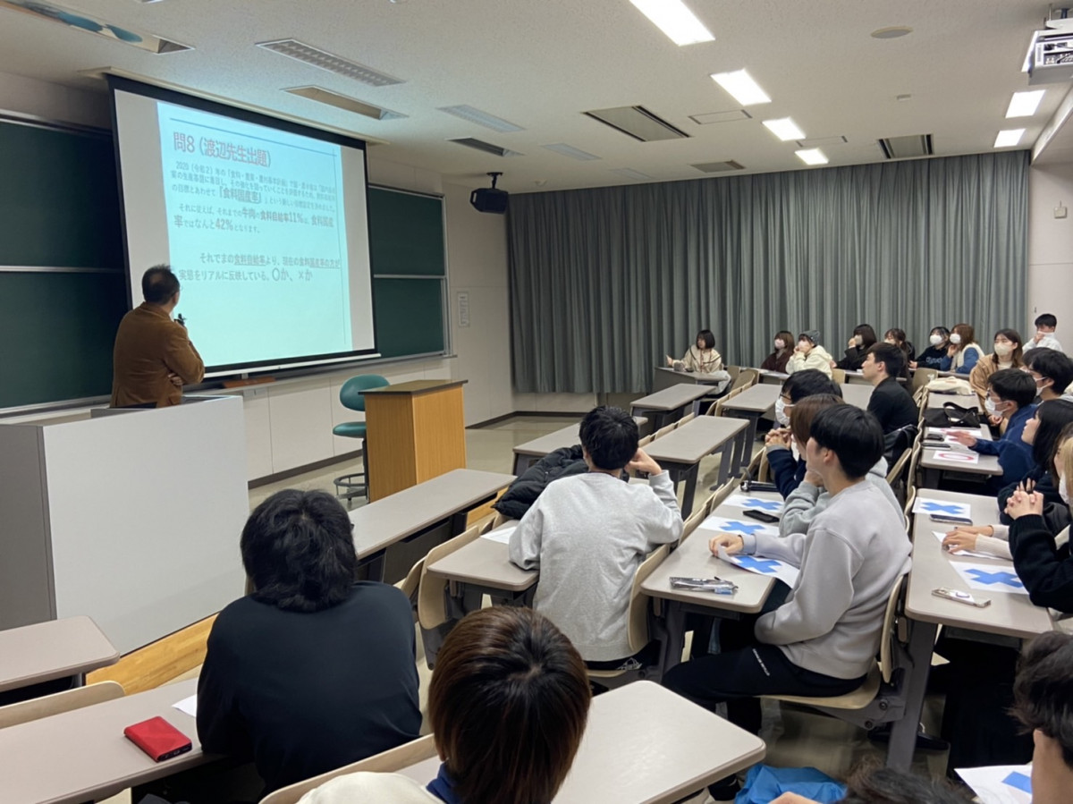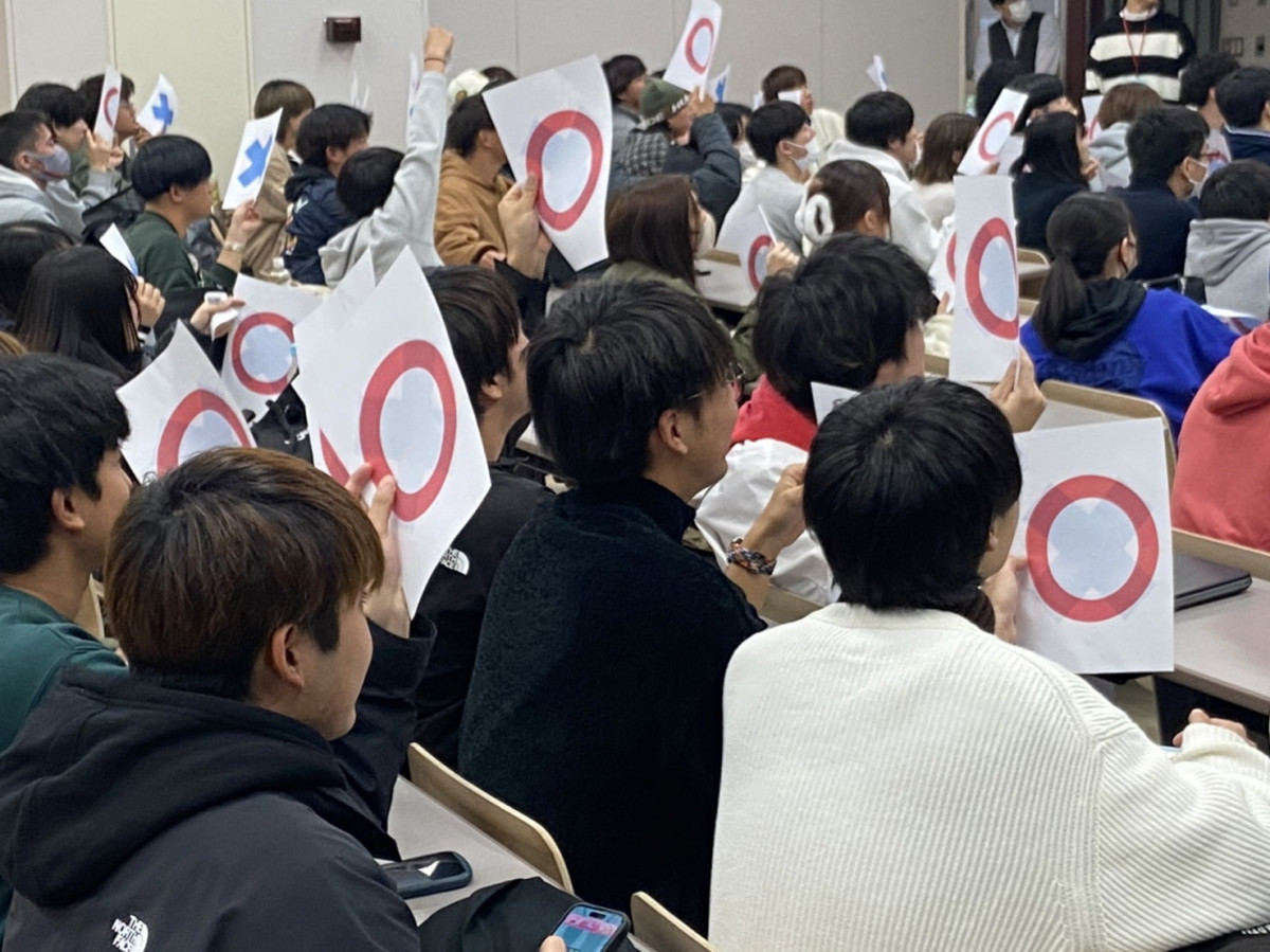 4月に開催した企画第1弾のドッジボール大会から7ヶ月ぶりの開催となった本企画。久しぶりのレクリエーションで、開始前からどのクラスも優勝に向けて意気込んでいました。クイズ大会では、先生方の出題する「○✕クイズ」に対して学生がクラスメイトと相談しながら回答し、クラスごとの正解率を競いました。クイズの問題には経済学科2年次以上の授業で学ぶ内容も含まれており、学生が頭を悩ませる場面が見受けられました。一方で、正解率は全クラス70パーセント以上と全体的に高く、クラス間の差は最大10パーセント以内と白熱した大会となりました。クラス一丸となって協力しあうことで、クラスメイトとの絆が深まった様子でした。