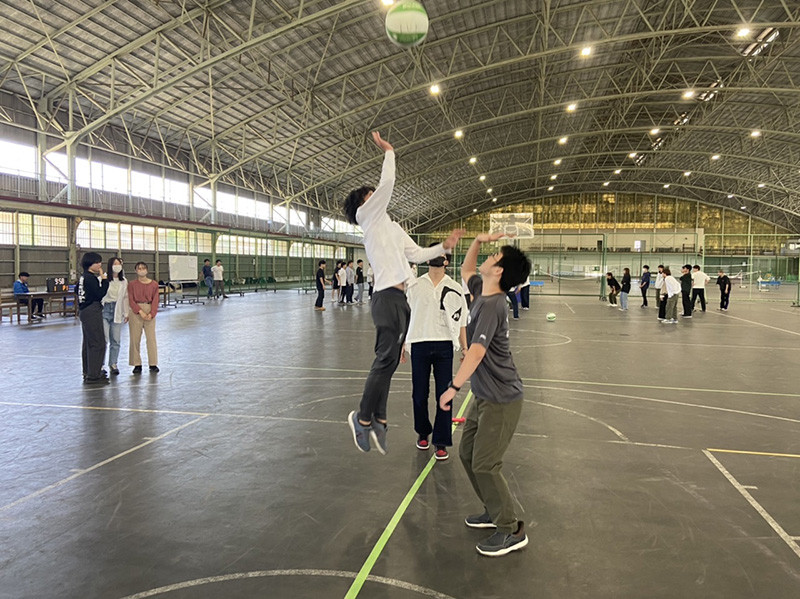 フィールドハウスに集合したときは緊張した面持ちの1年生でしたが、次第に高校時代の部活や今所属しているサークルの話題に花を咲かせていました。試合が始まると、真剣に戦術を練ったチームプレーや熱の入った本気のプレーが多く見られました。試合終了の合図があるまで攻守が目まぐるしく入れ替わる接戦の試合もありました。