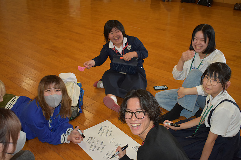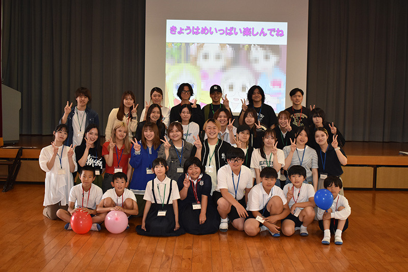5月23日、経営学科・中西ゼミの3年生24人が、桜島の小さな小学校、鹿児島市立桜峰小学校の子どもたち8人と学内で交流しました。