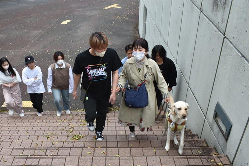 5月5日、経営学科・中西ゼミの3年生24人が、視覚障害者へのお散歩支援とお食事支援を通してコミュニケーションについて学びました。