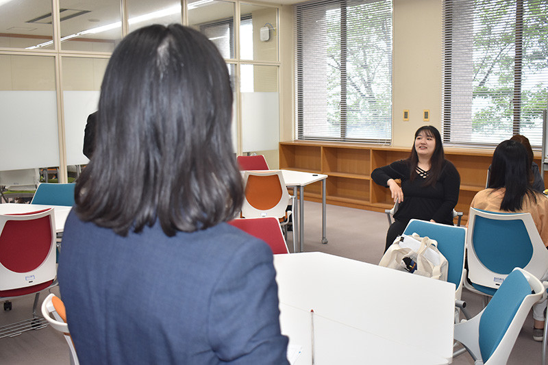 これは中西ゼミの4年生対象の企画「就職前キャリア教育」の一環として、SMBCコンシューマーファイナンス(株)(以下、SMBCCF社)の協力により実施された取り組みで、講師は昨年に引き続き同社鹿児島お客様サービスプラザの増子ほなみさんが務めました。