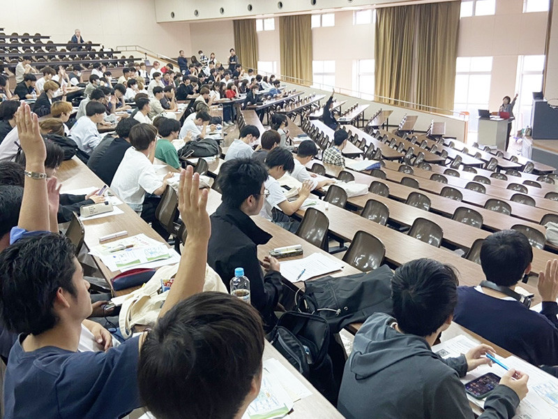SA(スチューデントアシスタント)として1年生と一緒に講義を聴いていた坂下智海さん(経済学科2年生)は、「普段、目にしたり聞いたりする情報が正しいかどうか判断することは簡単ではないが、今回教えていただいたことを意識するだけでも安全性が増し、トラブルに巻き込まれることは減ると思う」と、講座を振り返りました。