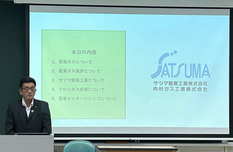 エネルギー産業は鹿児島県の主要産業です。しかし、産業の性質上、学生たちに馴染みが薄く、関心の対象になりにくいのが現状です。そこで、経営学科の中西孝平准教授が「企業形態論」を(1)中西准教授による単独授業と(2)中西准教授と協力企業4社による共同授業、(3)協力企業4社での一日就業体験からなる新型のインターンシップとして企画しました。