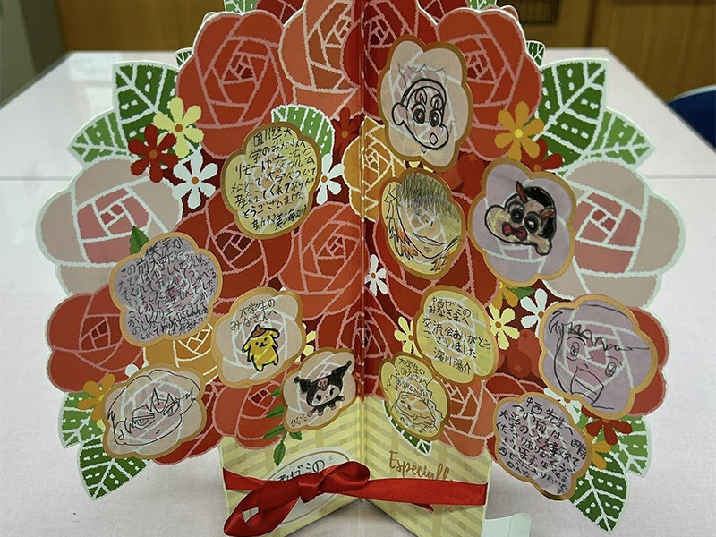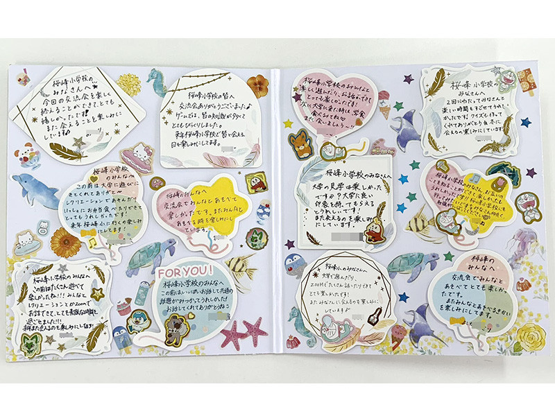 7月になって子どもたちから素敵なお便りが届きました。「飛び出す絵本」のような色紙には、子どもたちの珠玉の言葉がたくさん書かれていました。「大学のことをたくさん教えてくださり、ありがとうございます」、「桜峰小学校に来られるのを楽しみにしています」。子どもたちの喜びと学びが感じられるお便りでした。