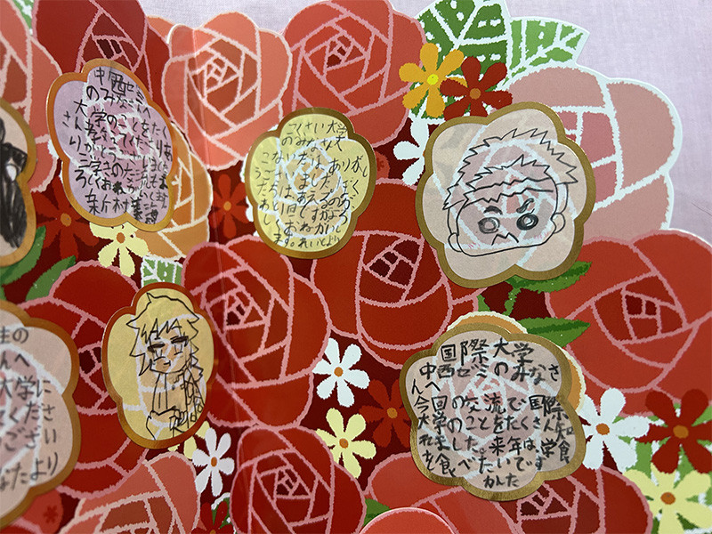 今回の文通で中心となって活動した中西ゼミ3年の西別府由那さんは「お手紙を送ることも考えました。でも、子どもたちに教室に貼って残してもらいたくて、色紙にしました。子どもたちからのお便りを読んで、喜んでくれているのが伝わり、うれしかったです」と語っています。
