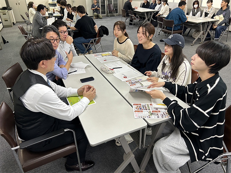 これは経営学科の中西孝平准教授が中西ゼミの3年生を対象に企画したイベントで、就職活動を目前に控えたこの時期に、県内中小企業の経営者とざっくばらんに語り合うことを通して、自身のキャリアについて考えるきっかけとすることを目的としています。中西ゼミのキャリア教育としては、10月3日の「就職活動体験談(3・4年生合同ゼミ)」、10月13日の「大手企業と語る会」に次ぐ第3弾にあたります。
