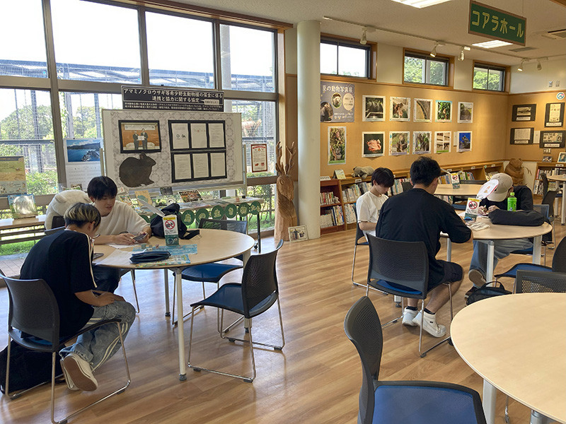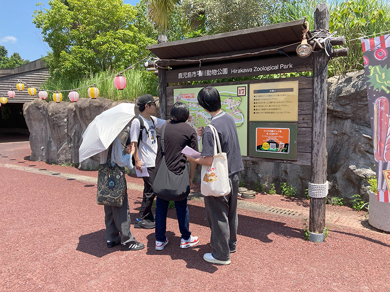この講話を受けて、ゼミ生39名は、7月15日に平川動物公園を訪問し、入園者増加に向けた現地調査を行いました。学生たちはテーマごとに園内を視察し、各自が担当する項目についてワークシートに具体的なアイデアや改善案を記入しました。現地での観察や施設の状況を確認する中で、講話で学んだ内容を自分の目で確かめながら、改善策を考える貴重な機会となりました。