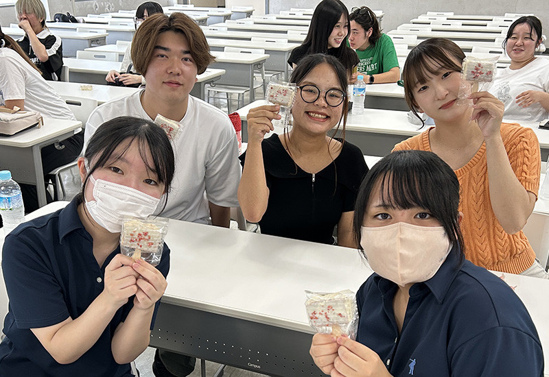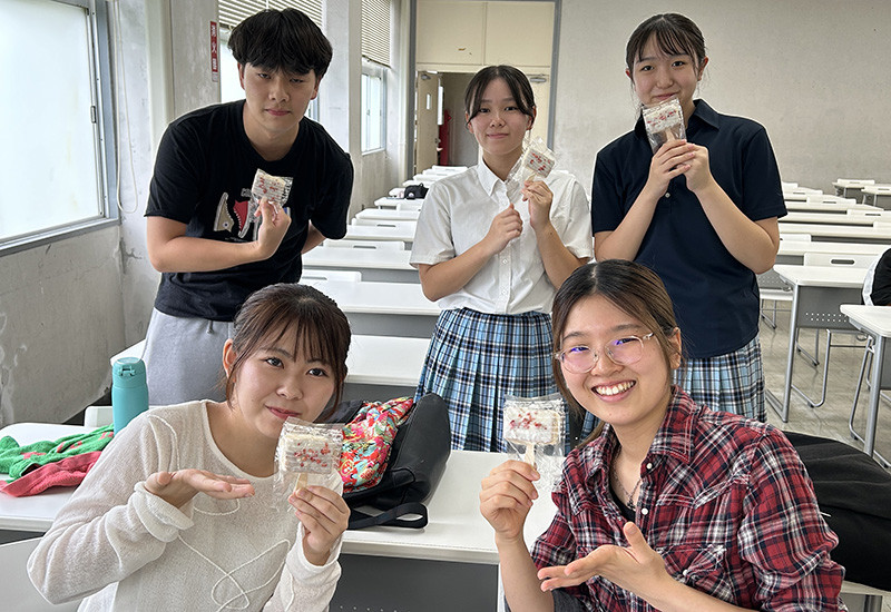 経営学科・中西ゼミ(2年生)では、今年度も、本学と鹿児島銀行の共催事業「インクルーシブ時代の商品開発ワークショップ」の一環として、クラーク記念国際高校の生徒たちと一緒にスイーツを考案しました。