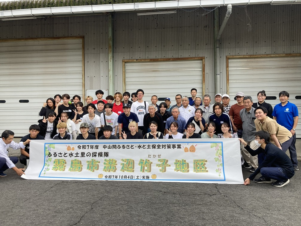 経営学科のキムゼミ・樋口ゼミ(担当教員:キムリーナ、樋口晃太)が10月4日、「ふるさと水土里の探検隊事業」に参加しました。この事業は、鹿児島県庁・鹿児島県土地改良事業団体連合会等と連携し、県内地域の活性化を目的に毎年行っています。