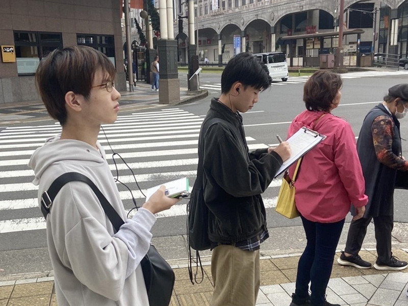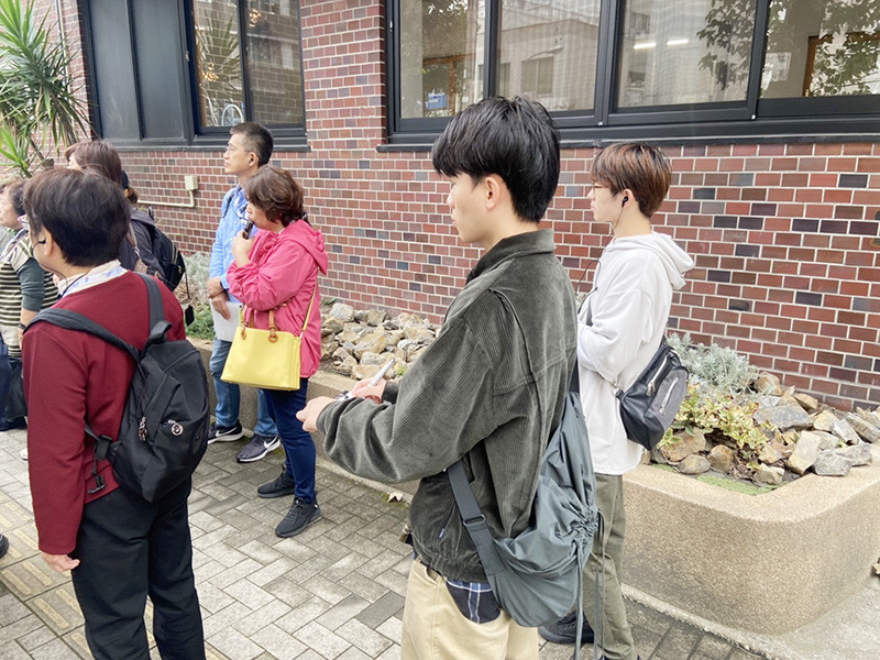 当日は、正午と午後の計2回、合計約3時間のまち歩きに参加し、全国各地から訪れた約15名の観光客と対話しました。授業で準備した質問項目をもとに、観光への期待、まち歩きの感想、次回訪問時に体験したいことなどについて伺いました。
