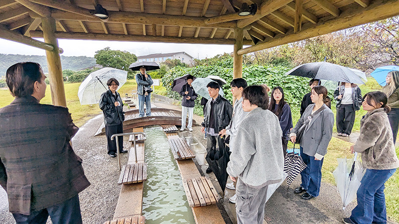 今回の企画は、体験的・野外学習の視点とも深く関わっています。地域に眠る俳句文学を教材として扱い、実際に訪れることで地域の風景・文化・歴史そのものを学びの場として再発見できる構造を意識して設計しつつ、ツーリズム事業化の可能性を考察する機会となりました。俳句人口は世界的にも多く、東京規模とも言われるほど広がりを見せており、こうした地域文化とツーリズム性をつなぐ実践式な企画はグローカル教育の好例とも言えます。午後は昼食後、フェリーで桜島へ移動し、桜島にはゆかりのある句碑が数多く存在するため、詩に描かれた風景を実際に探しながら「俳句ウォーク」を実施しました。院生の研究テーマでもある屋外教育の実践的応用であり、地域の自然環境そのものを教室として活用し、学習者が五感を通して地域を理解する取り組みとなりえるでしょう。桜島の風景を自らの足で歩き、句碑に刻まれている自然と現在の景観を重ね合わせる過程は、まさに体験的学習の核心となり、ツーリズム事業として形にできる要素でもあります。本研修会とフィールドワークは、地域文化の再発見・国際交流・実践的英語教育・野外学習という複数の要素が有機的に結びつけ、英語俳句を媒介にした国際理解教育の可能性を強く感じ意義深い活動となりました。