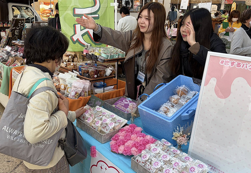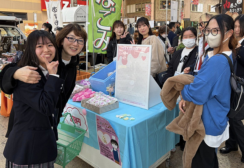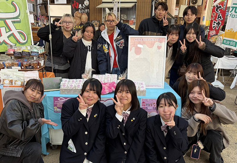 11月30日、経営学科・中西ゼミの2年生が鹿児島県知的障害者福祉協会主催のイベント「WAQ×WAQ SQUARE」に出店し、同ゼミとクラーク記念国際高校の共同開発商品「恋するパウンドケーク」を販売しました。