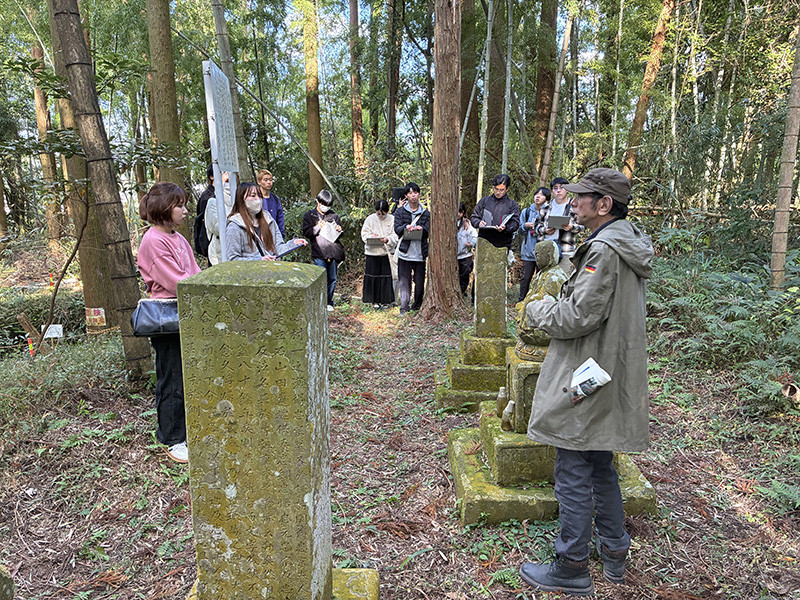 国際文化学科の大西ゼミ生14名は、11月30日に南九州市川辺町勝目地区でフィールドワークを行いました。これは、「文化財を用いた地域の活性化」をテーマとするプロジェクトの一環として、現地の情報収集を目的に実施したものです。