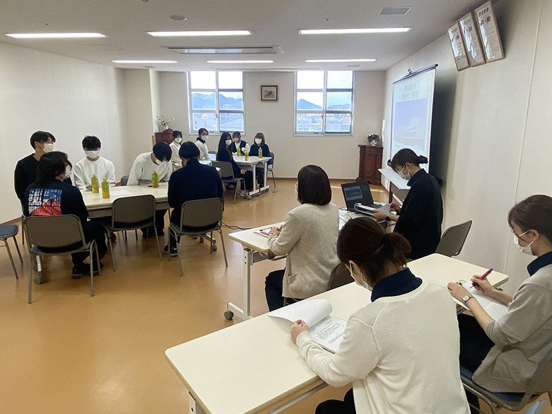 社会福祉学科の茶屋道ゼミに所属する3年生の多くは、精神保健福祉士の資格取得を目指しており、将来のキャリア形成を目的として、12月3日にゼミ生10名が松下病院(霧島市隼人町)を訪問しました。