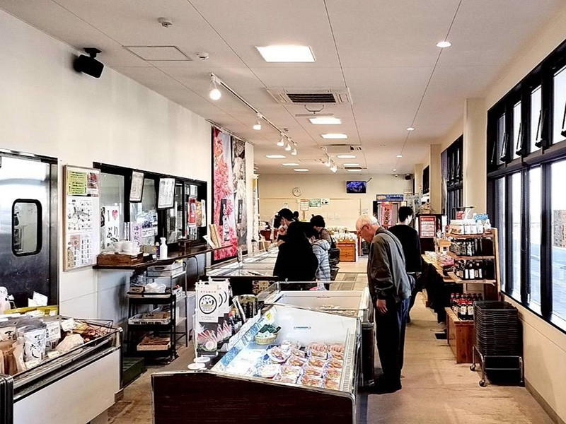 垂水市訪問の班は、「グローバルオーシャンワークス」を訪問し、同グループの鹿児島水産・田島社長より養殖ブリの輸出に関する現状や今後の展望についてお話を伺いました。その後、道の駅たるみず内にある同社のアンテナショップ「よかもん市場」を訪れ、実際にブリを試食しました。地域資源が国際市場へ展開される一方で、地元の拠点でも提供されている実情に触れ、学生たちは経済活動を多角的に捉える機会を得ました。
