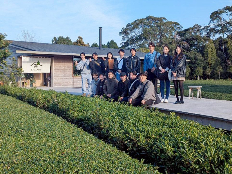 鹿児島市訪問の班は、「坂之上製茶」を訪問しました。坂之上和美氏より事業概要や煎茶と抹茶の違いについて説明を受けた後、加工工場を見学させていただきました。さらに、県内のお茶消費量の向上を目指して2024年3月にオープンしたカフェにて煎茶などをいただきながら、今後の抹茶輸出の展望についてもお話を伺い、地域産品の付加価値や今後の展開について考察を深めました。