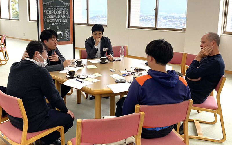 今回は、アイリッシュ・ジェフリー所長の研究テーマである「大学ディプロマ・ポリシー(DP=学位授与方針)とゼミ活動との関わり」を中心テーマとし、各教員が自らの専門分野や教育実践の立場から、ゼミ活動を通して学生にどのような力を育てたいかについてディスカッション。鹿児島国際大学のディプロマ・ポリシーは、専門的知識や技能、意思形成・伝達能力、的確な判断能力、主体的な学修意欲、多様性理解など5つの能力を柱としています。