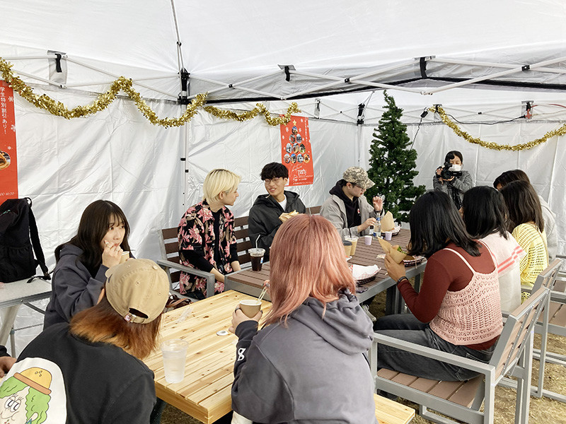 各コンテナカフェでは、学生が考案した期間限定のクリスマスメニューの提供もあり、季節感を意識した商品が来街者の関心を集めました。
