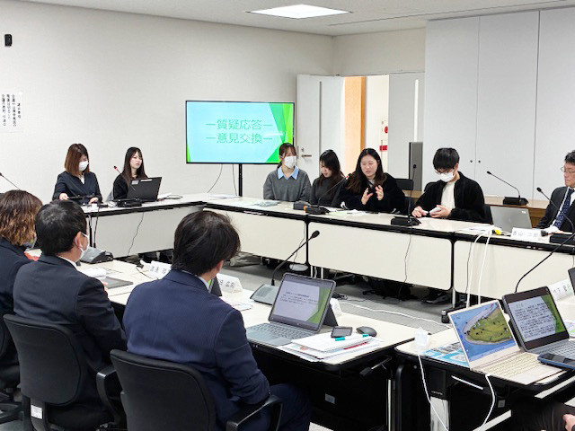 報告会では、9月に実施した「地域住民との懇談会~地域の未来を語り合おう~」および、11月に霧島地区の地域包括支援ネットワーク推進会議と共催した「霧島地区の地域課題について語る会」での活動をもとに、地域の強みや課題、学生が考えた課題解決策について発表しました。その後は、議員の皆様から多くのご質問やご意見をいただき、活発な意見交換が行われました。