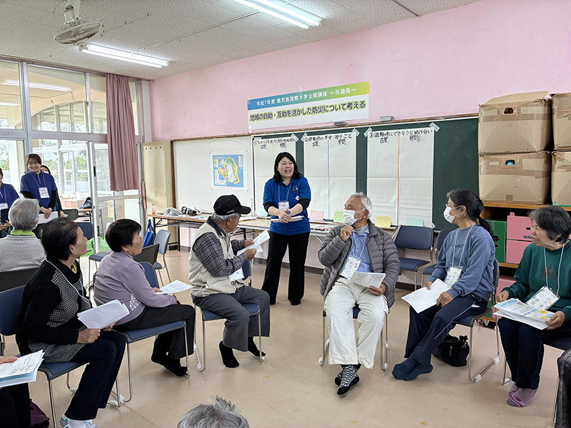 公開講座「自助・互助を活かした防災活動について考える」を2月20日、与論町で開催しました。この講座は、地域住民が主体となった防災力の向上を目的に実施したもので、那間地区および古里地区の住民ら約20人が参加。講師は、看護学部の稲留直子准教授が務めました。